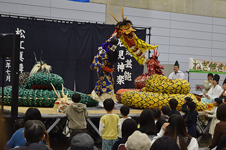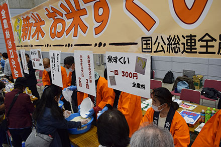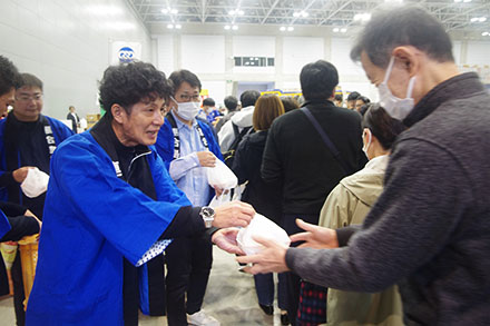新鮮野菜の販売や地元食材を使用した加工品販売・飲食提供などを中心とした31のブース、来場者には「こめタマゴ(先着1000パック)」の配布、ステージイベントとして「ほりぴ」「アスタリスク プール」のミニコンサート、松江真舞会による石見神楽奉納、最後に餅まきを行い、大盛況のイベントとなりました。